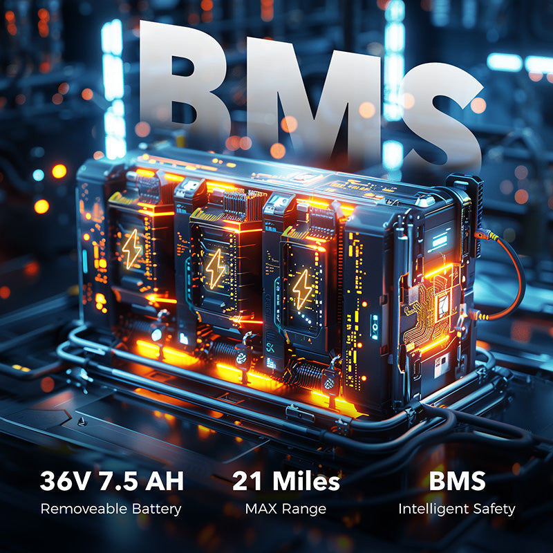 • 500W brushless electric motor for consistent acceleration and hill-climbing assistance.