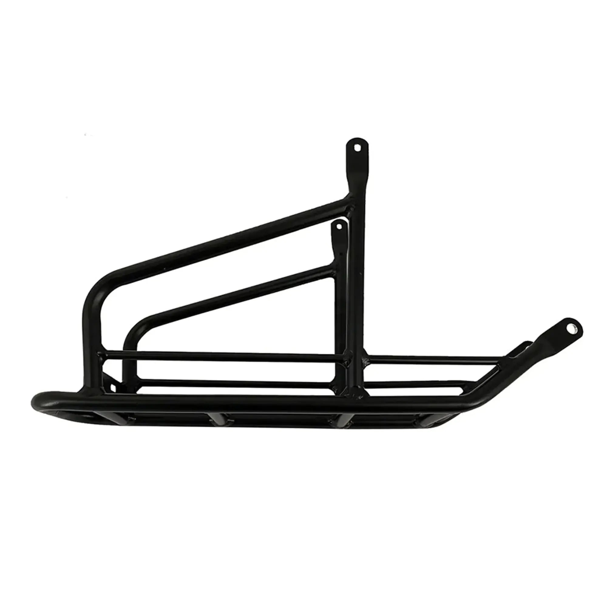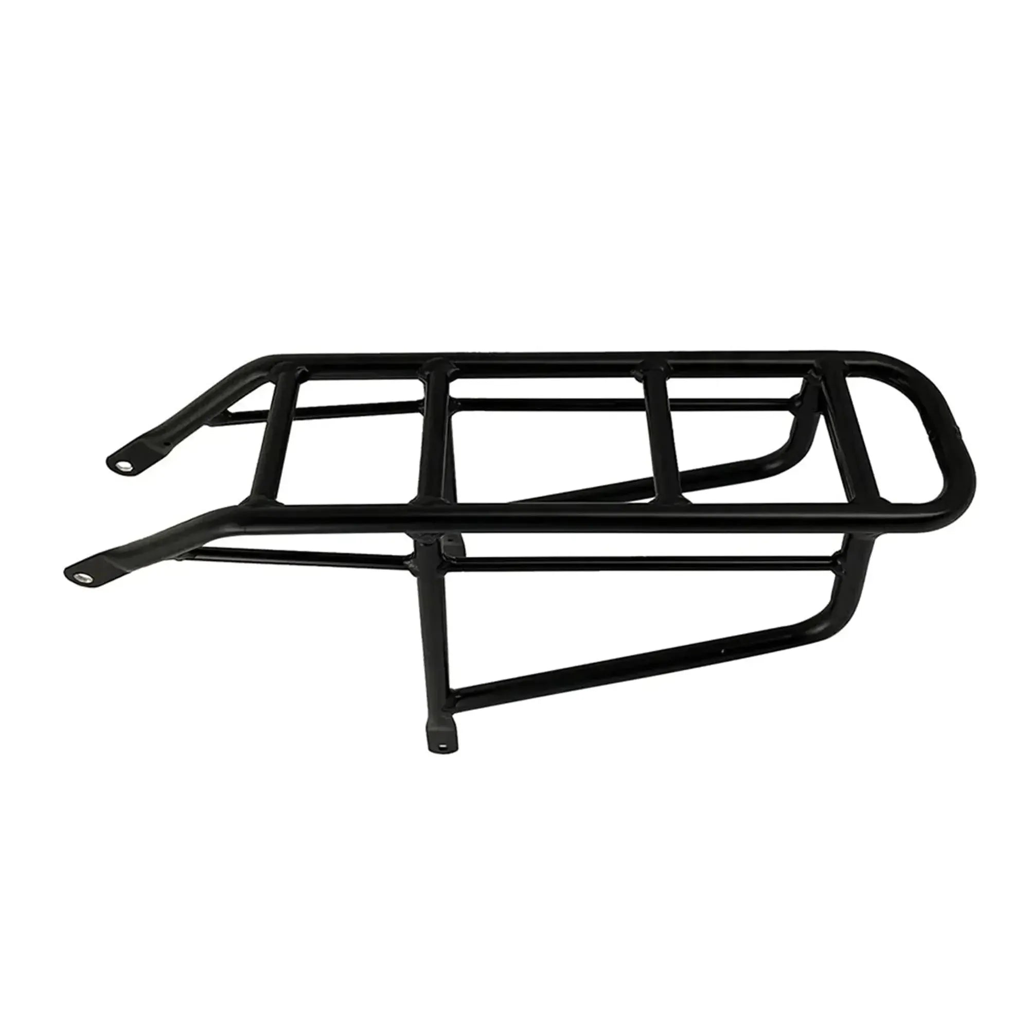 • Wide rack deck with two side rails and multiple attachment points for panniers and straps.
